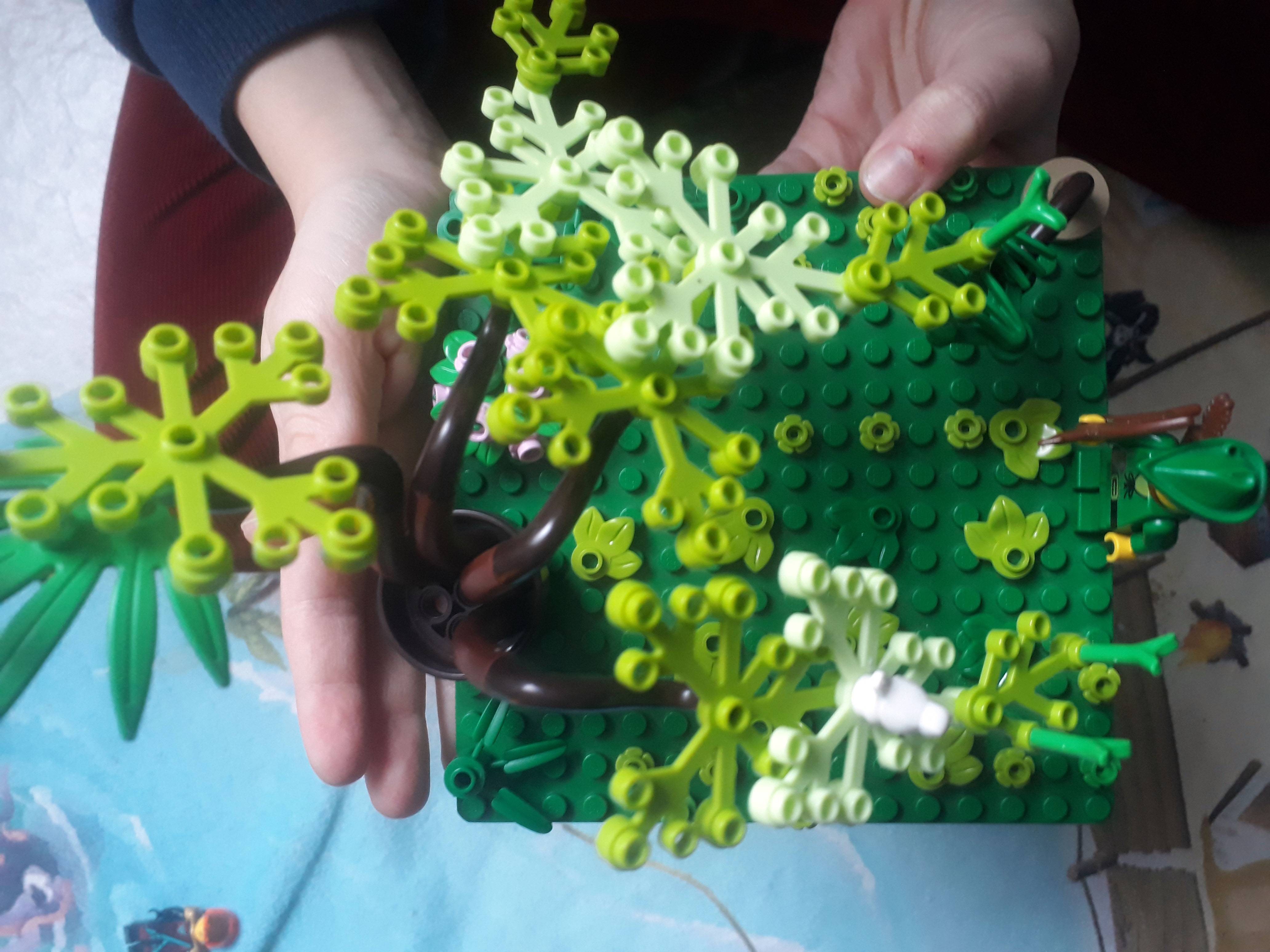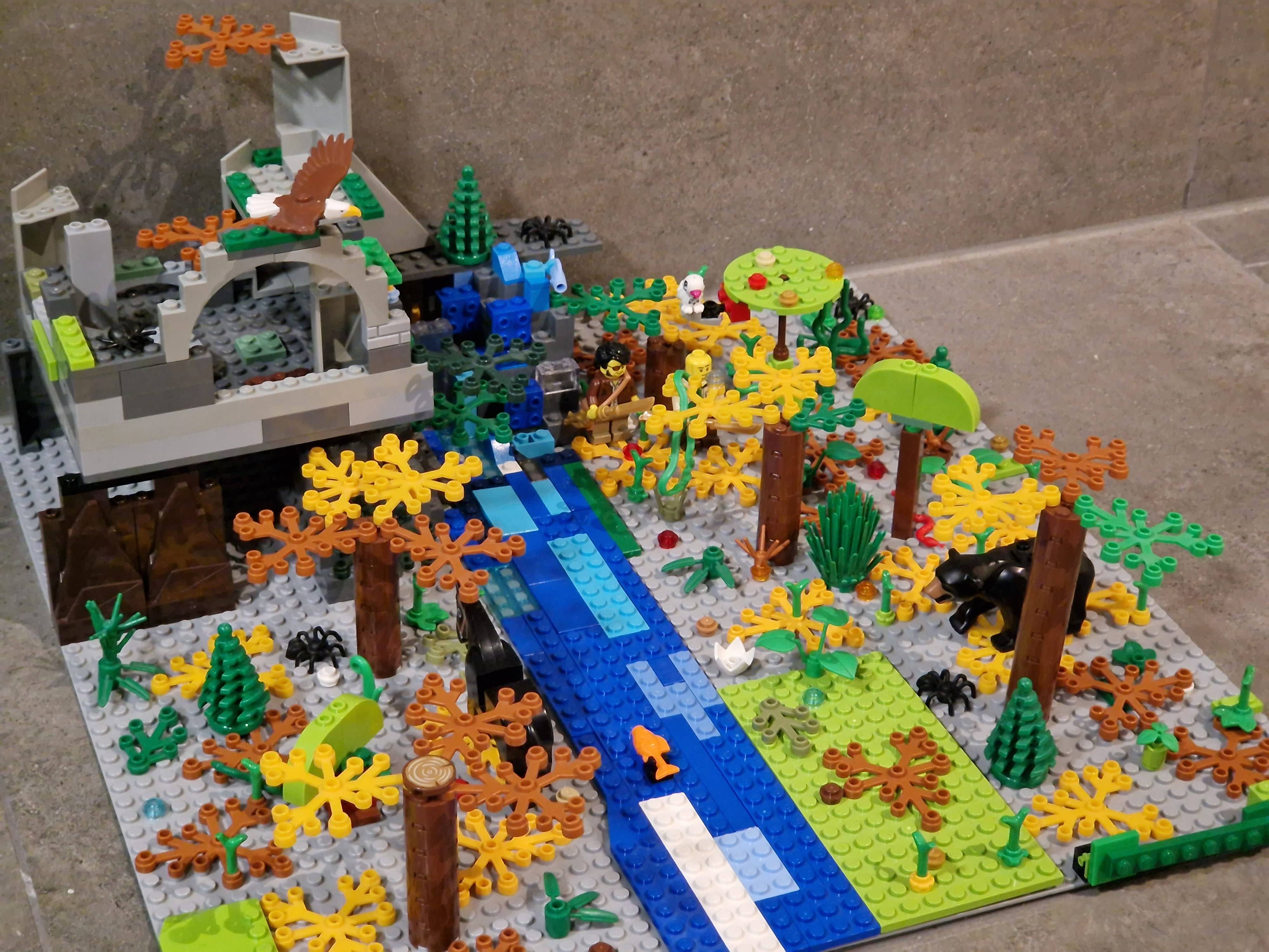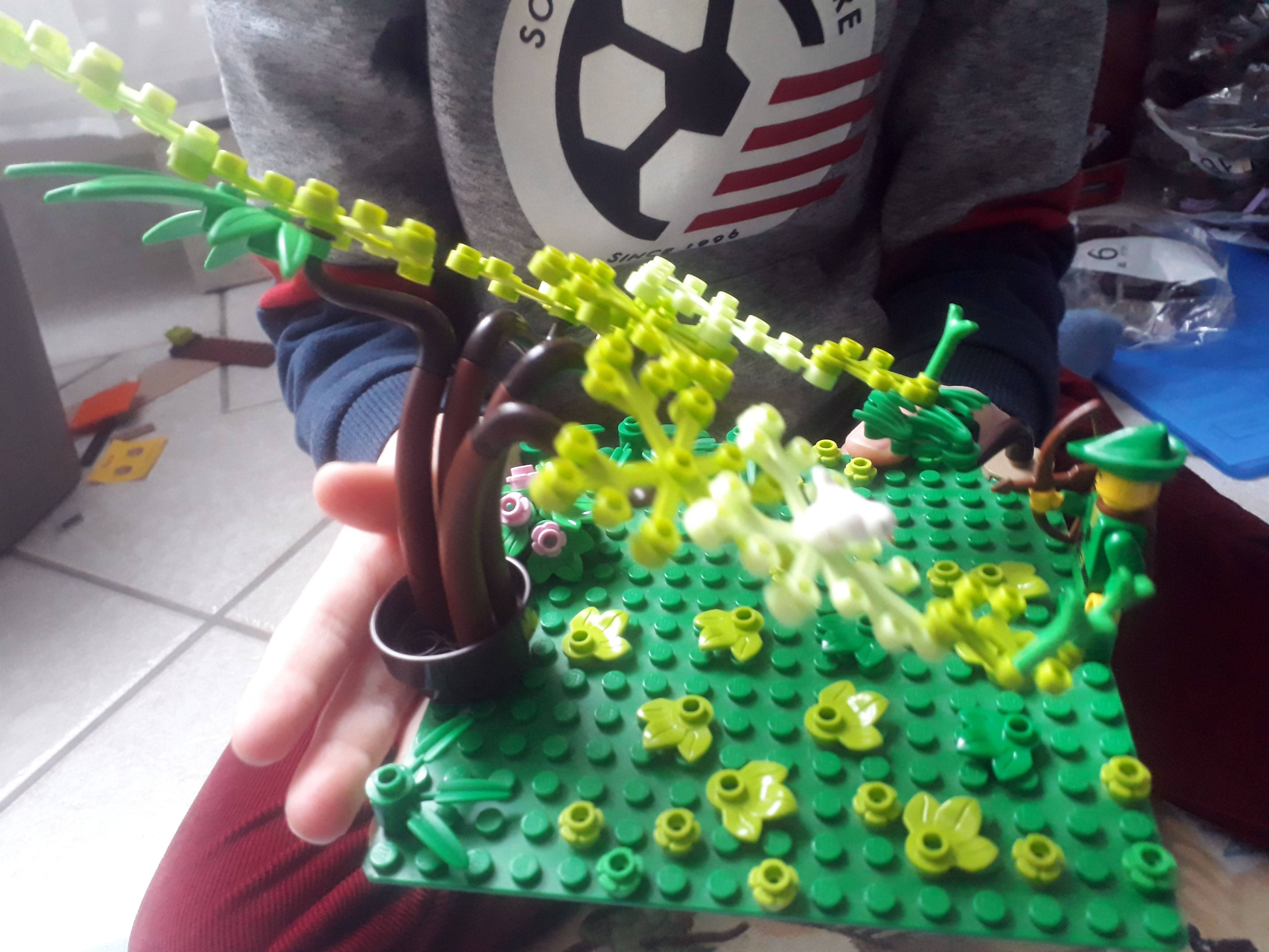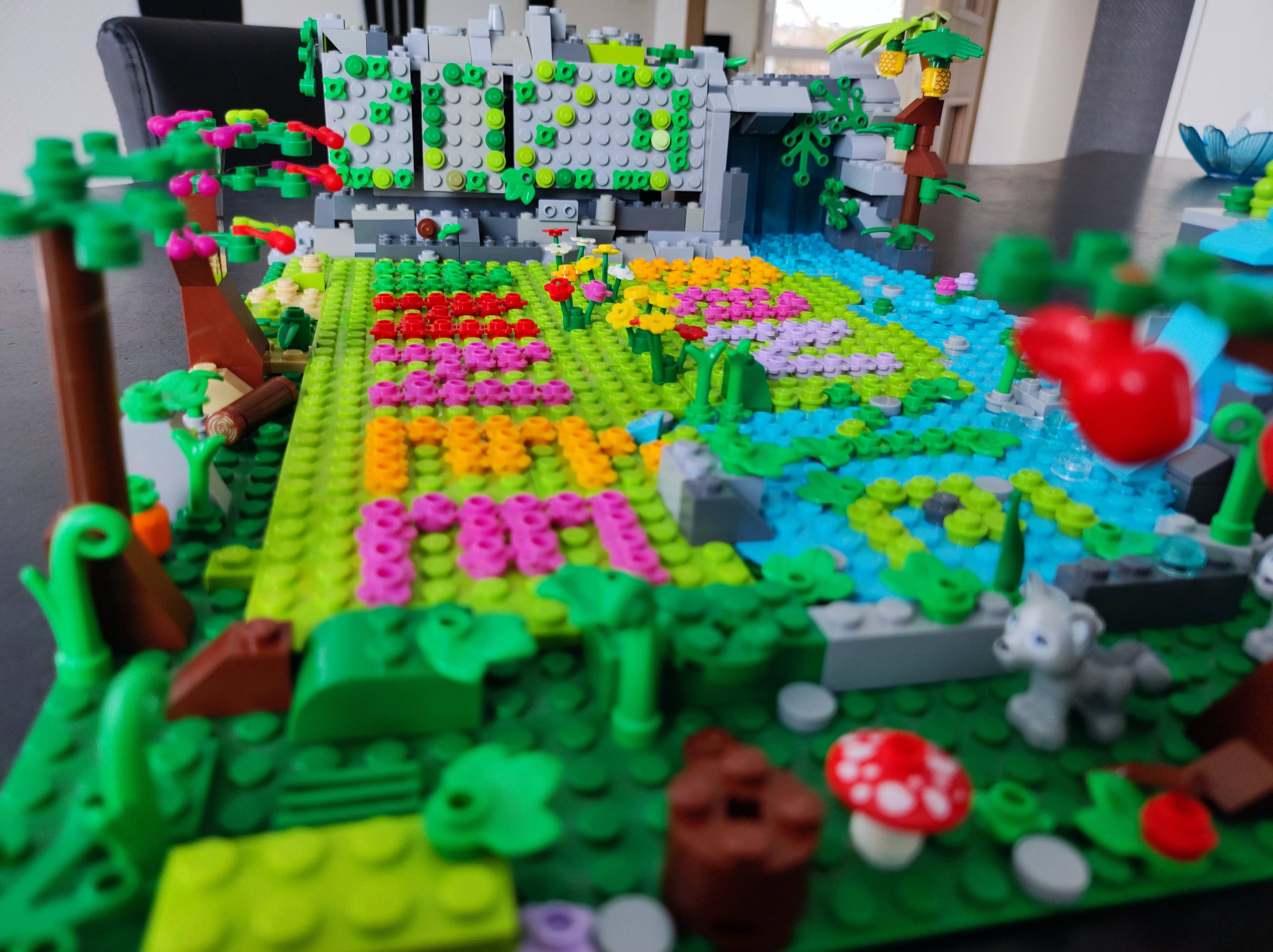 C'est une merveilleuse jungle avec cascade, arbres et décoration, avec un petit fort . Dépaysement assuré .