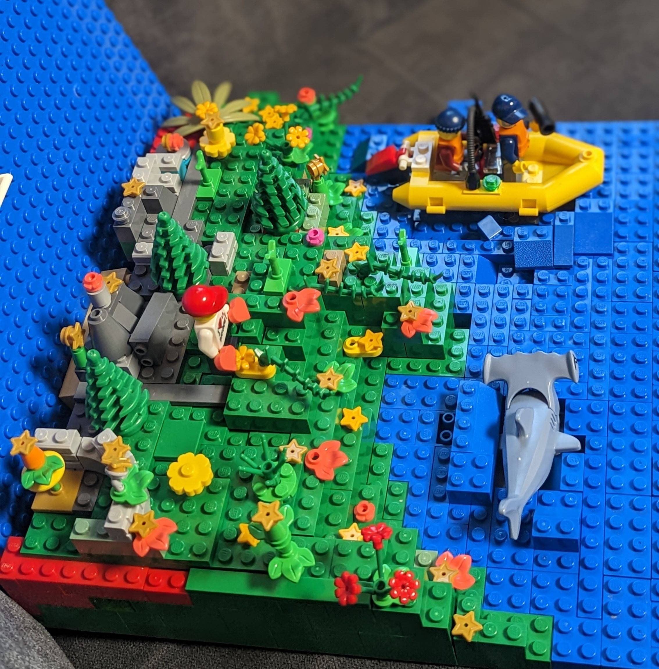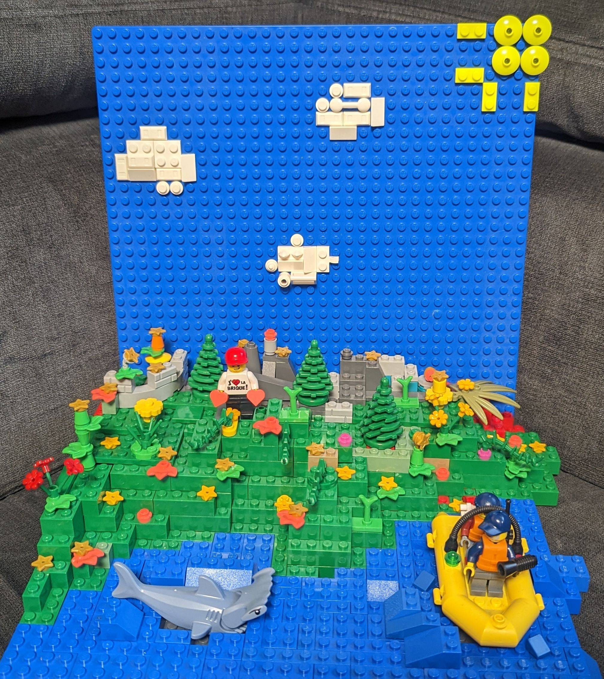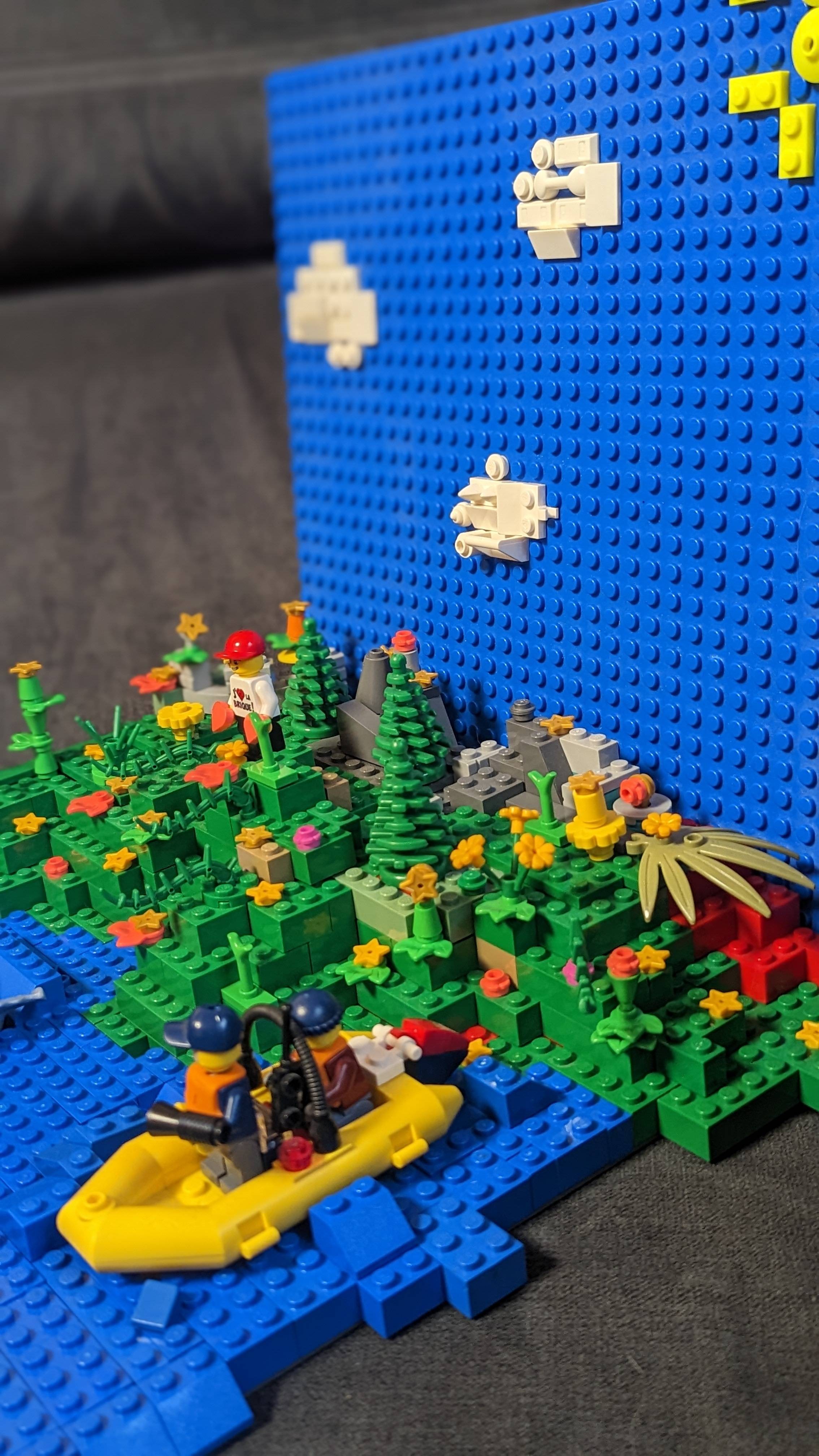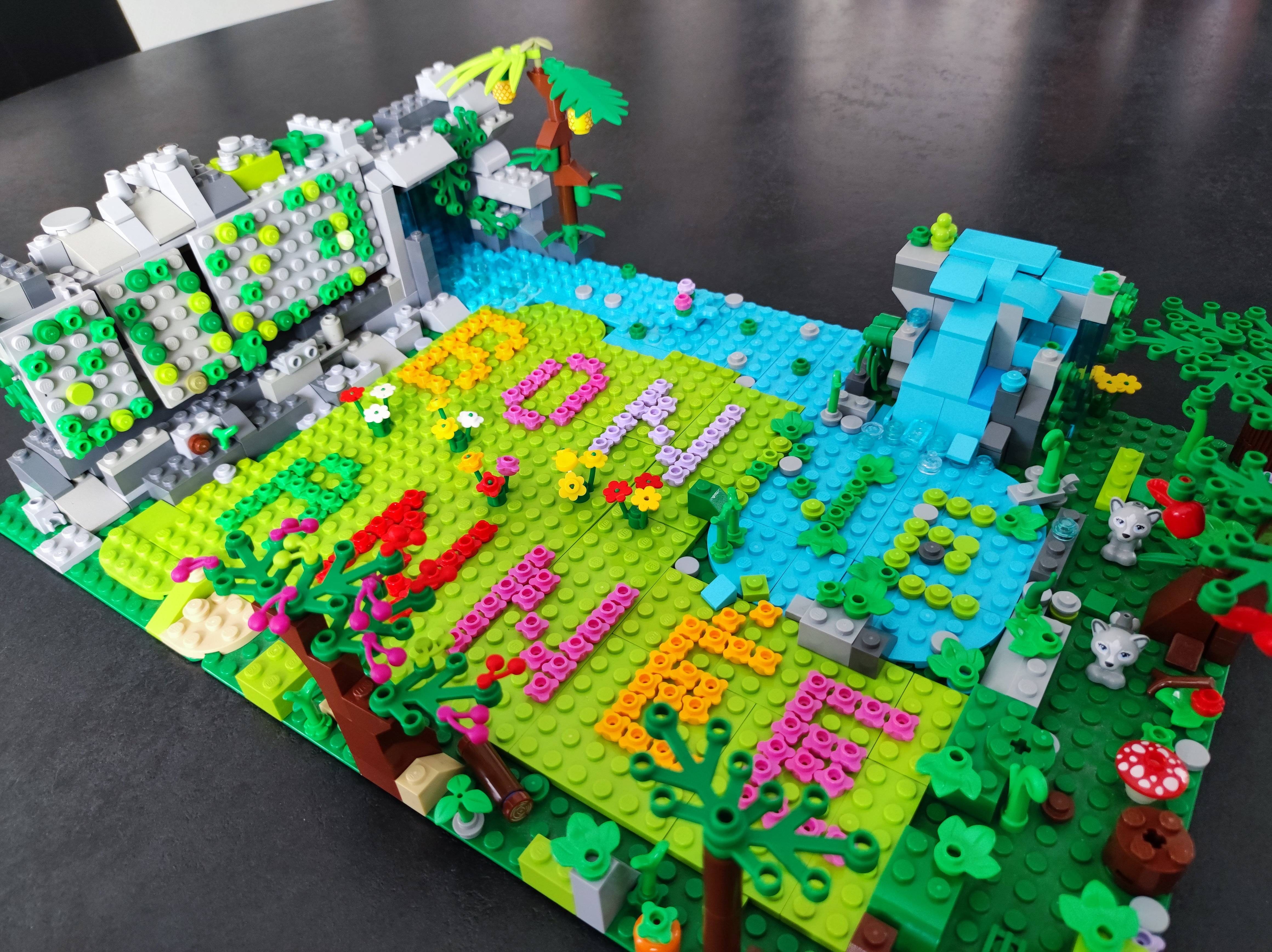 C'est une merveilleuse jungle avec cascade, arbres et décoration, avec un petit fort . Dépaysement assuré .
